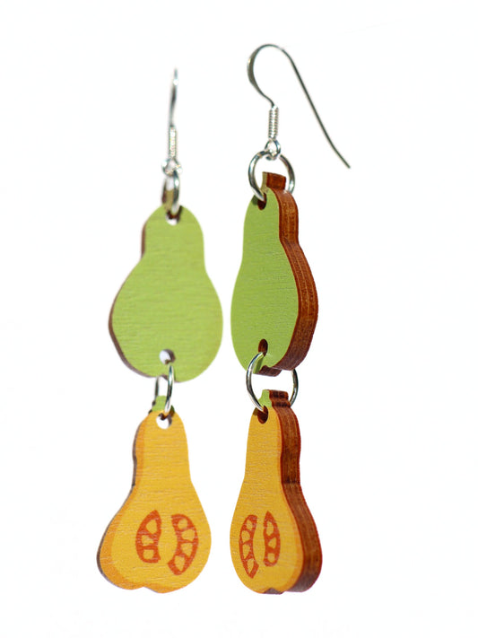 Kasvimaan kaverit -korvakoru on 7cm pitkä. Koru on valmistettu 3mm paksuisesta koivuvanerista. Paino 2g.